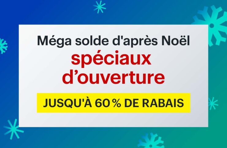 Préparez-vous à profiter de ces incroyables spéciaux d’ouverture dès le début de notre Méga solde d'après Noël en ligne. Ou rendez-vous dans votre magasin le plus proche le 26 décembre à l’ouverture ou le 27 décembre dans les provinces de l'Atlantique.