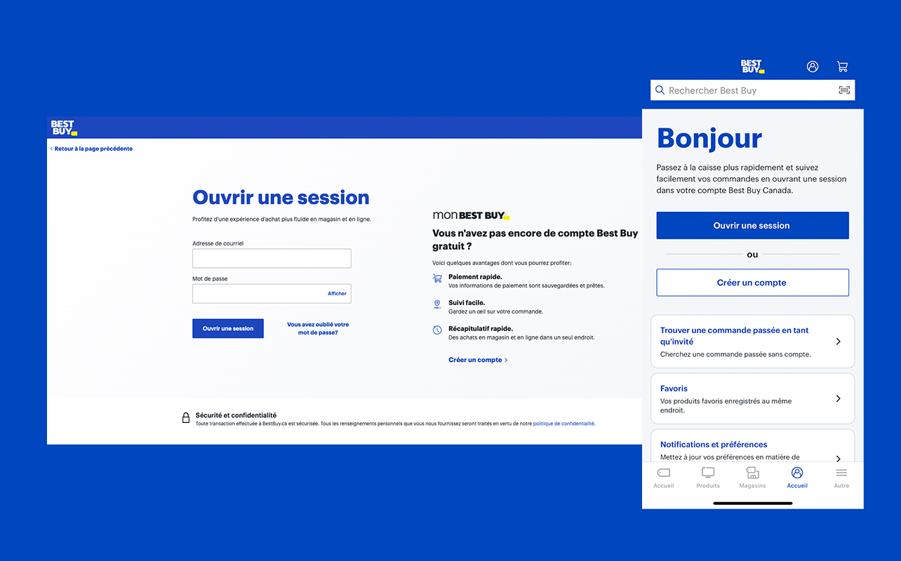 Avec un compte mon Best Buy, vous pouvez sauvegarder vos renseignements de paiement et d’expédition en toute sécurité, pour pouvoir magasiner facilement sur l’application Best Buy Canada ou sur BestBuy.ca.