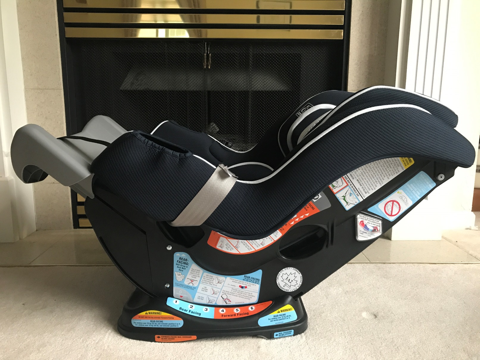 Selon moi, le plus grand argument de vente est l’option d’orientation vers l’arrière, comme je l’ai mentionné plus haut. Cette caractéristique à elle seule fait que ce siège remporte la palme à mes yeux. Ma fille mesurait 36 pouces de haut à son premier anniversaire ce qui a rendu l’orientation arrière très difficile dans la berline familiale. Ce siège m’aurait grandement facilité la vie et m’aurait évité d’acheter un VUS et de le conduire pendant deux ans, le temps que nous soyons à l’aise de l’asseoir dans le siège orienté vers l’avant.