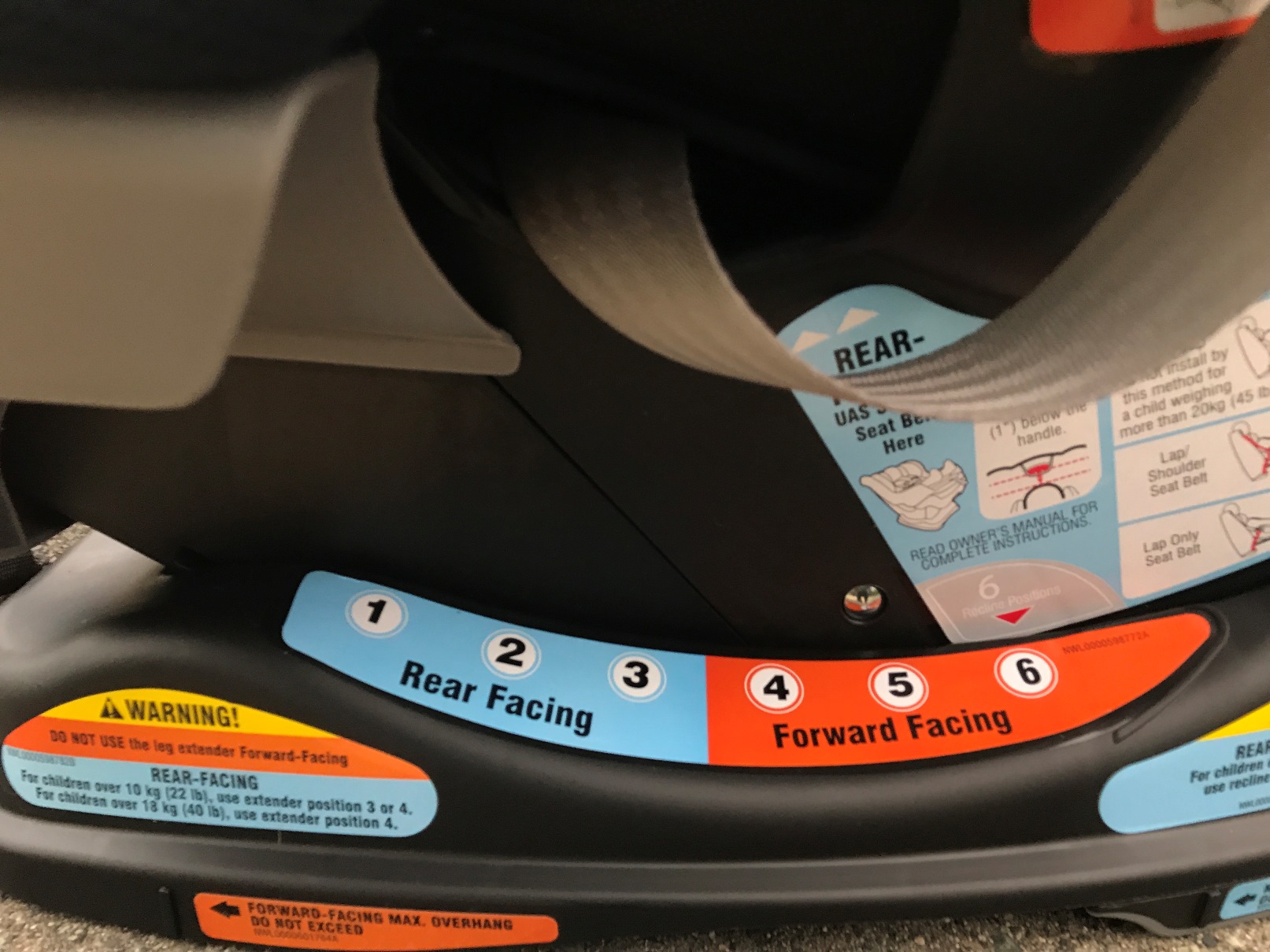 Cela dit, comme je l’ai mentionné, le siège peut accueillir les enfants de 4 lb, la limite de poids minimale la plus petite que j’aie jamais vue pour un siège ordinaire. Avec sa limite de poids de 50 lb lorsqu’orienté vers l’arrière, ce siège est le meilleur de sa catégorie. Beaucoup d’enfants moyens peuvent s’asseoir dans le siège orienté vers l’arrière jusqu’à l’âge de trois ans grâce aux réglages de hauteur supplémentaires.