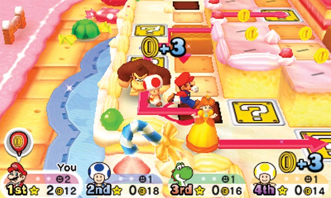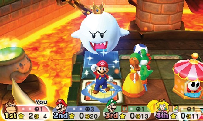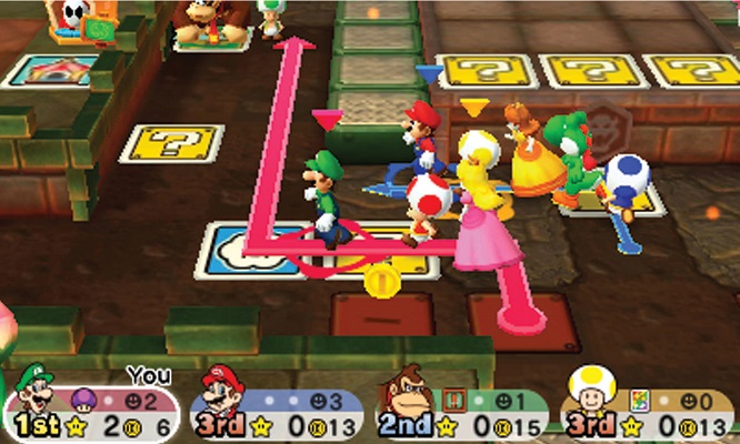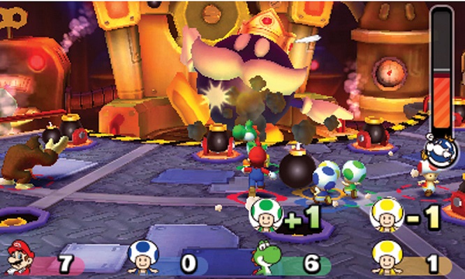 Mario Party : Star Rush est conçu pour passer du bon temps dans des compétitions amicales où le gagnant est celui qui réussit à collectionner un plus grand nombre d’étoiles dorées. Le jeu est divisé en plusieurs sections offrant des manières uniques de s’amuser mais son attrait principal est sa quantité phénoménale de mini-jeux qui font appel au hasard, à notre rapidité d’action, d’adresse ou de mémoire.