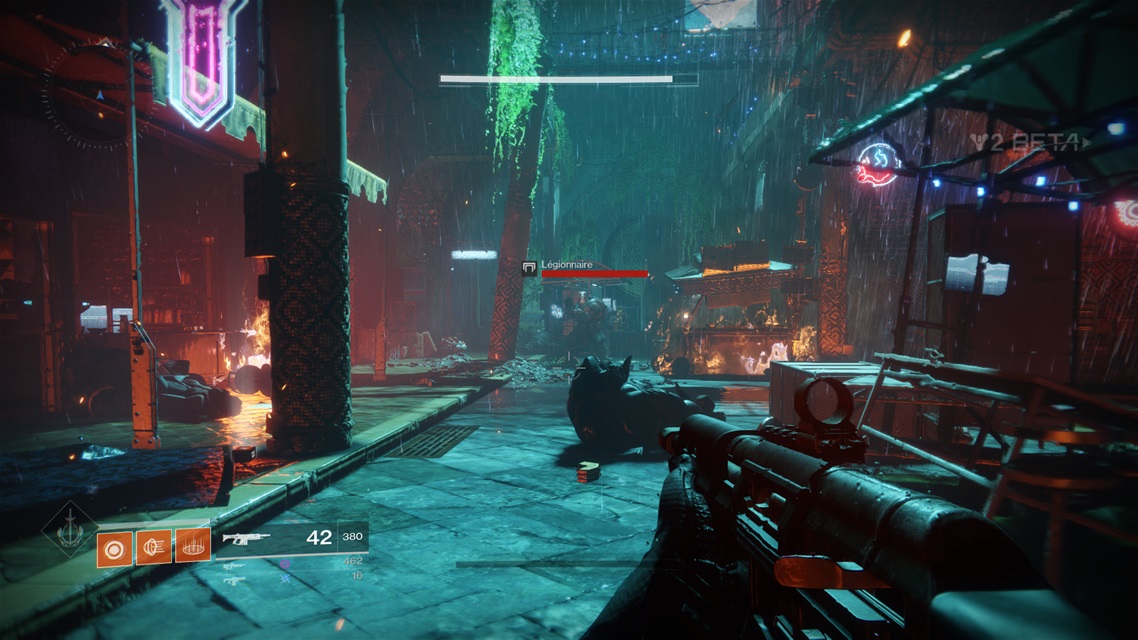 Je n’ai pas eu l’occasion de jouer à Destiny alors j’étais fébrile à l’idée d’explorer cette bêta pour Destiny 2. Je ne me suis pas sentie trop déstabilisée. J’ai même eu pas mal de plaisir avec les gens croisés sur le champ de bataille. Dans la campagne, les environnements sont fidèles au genre. Les débris s’amassent partout, on remarque les vaisseaux au loin lorsqu’on est à l’extérieur et il a l’air de s’en être passé des choses. Il y avait de la vie avant la destruction de la Cité et ça paraît.