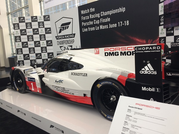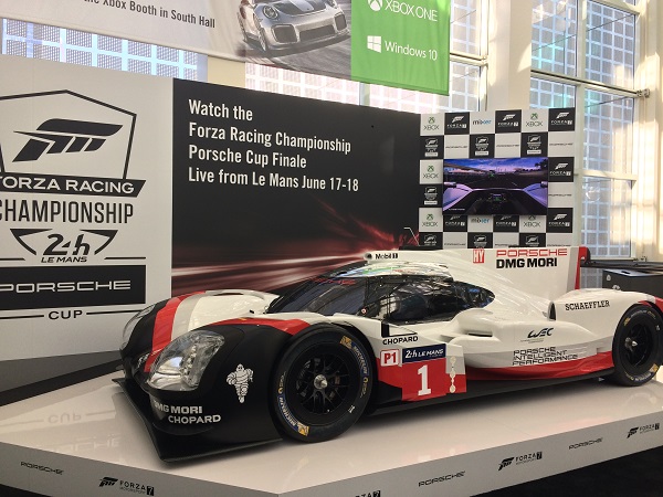 Chaque année, j’ai toujours hâte de voir la voiture mise en vedette pour le jeu de course de la série Forza. Dans Forza Motorsport 7, c’est une Porshe qui sera sur le boîtier et pour l’occasion, voici celle qu’on pouvait voir dans le couloir du centre de congrès.