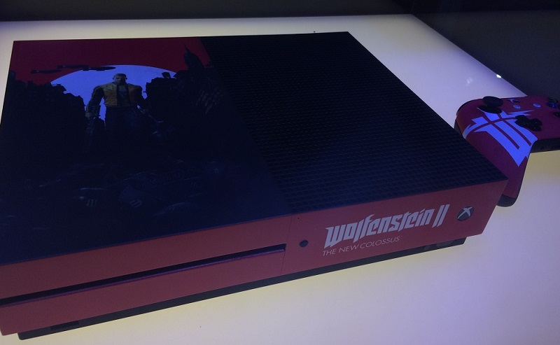 En parcourant les salles dédiées à l’E3, je suis tombée sur cette édition spéciale d’une console Xbox One S thématique pour Wolfenstein 2: The New Colossus. Le kiosque dédié au jeu était par ailleurs bien décoré. Bravo à Bethesda pour la présentation.