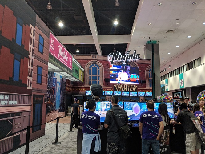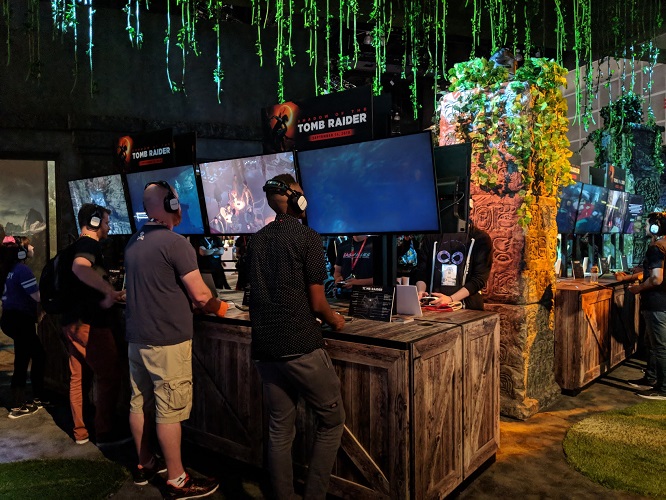 Le centre de congrès s’anime et chaque kiosque est représentatif d’un jeu phare de chaque compagnie. En voici quelques-uns qui m’ont impressionnée, dont le dinosaure de Jurassic World Evolution qui a réussi à rentrer dans les murs du centre congrès et Square Enix qui a fait pousser une jungle autour de ceux qui ont eu la chance de jouer à la démo de Shadow of the Tomb Raider.