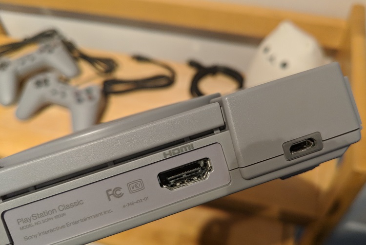 On se rappelle que lors du dévoilement de la console, PlayStation a émis un avertissement à l’effet qu’il n’y a pas de câble d’alimentation allant vers une prise de courant. C’est vrai. Or, son câble USB se branche facilement à une source d’énergie. Ce câble standard permet également de se brancher au mur via un adaptateur. Sinon, vous pouvez faire comme moi et utiliser un câble micro-USB lié à un embout avec fiche pour alimenter la PlayStation Classic.