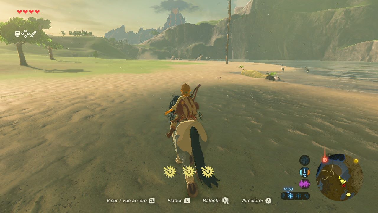 Évoluer dans un monde entièrement ouvert est la caractéristique qui saute aux yeux dans ce titre. En plus d’être grandiose, on s’y balade comme bon nous semble. La quête principale nous envoie combattre des monstres assez gros et il y a fort à parier que vous en mourrez si vous y êtes mal préparé. J’ai donc décidé de prendre mon temps. Alors que certains ont terminé l’aventure principale en une trentaine d’heures, j’y suis encore après quarante! Pourquoi? Parce que je voyage. J’ai voulu voir ce Hyrule de fond en comble.