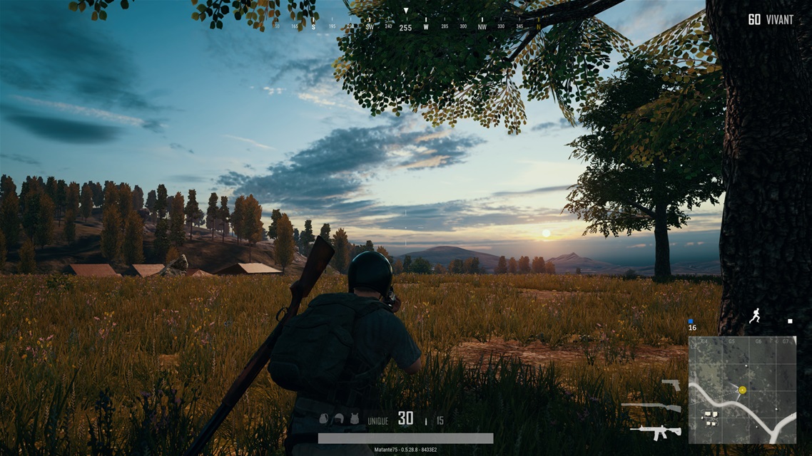 Voyant parfois des gens courir dans mon champ de vision, je me colle aux murs ou par terre en attendant qu’ils passent. Des fois, juste arrêter de bouger permet de faire en sorte qu’ils ne me voient pas du coin de l’œil. Quand j’entends des tirs ou des explosions, je me tourne naturellement vers la direction opposée. Se tenir loin de l’action équivaut à être loin des ennemis potentiels, non ? L’objectif de PlayerUnknown’s Battlegrounds est de terminer la partie comme seul survivant. Il y a aussi un classement qui souligne l’exploit de ceux qui se retrouvent dans le top 10. Recevant des points à la fin de chaque partie selon notre classement, ceux du Top 10 ont un boni bien mérité.