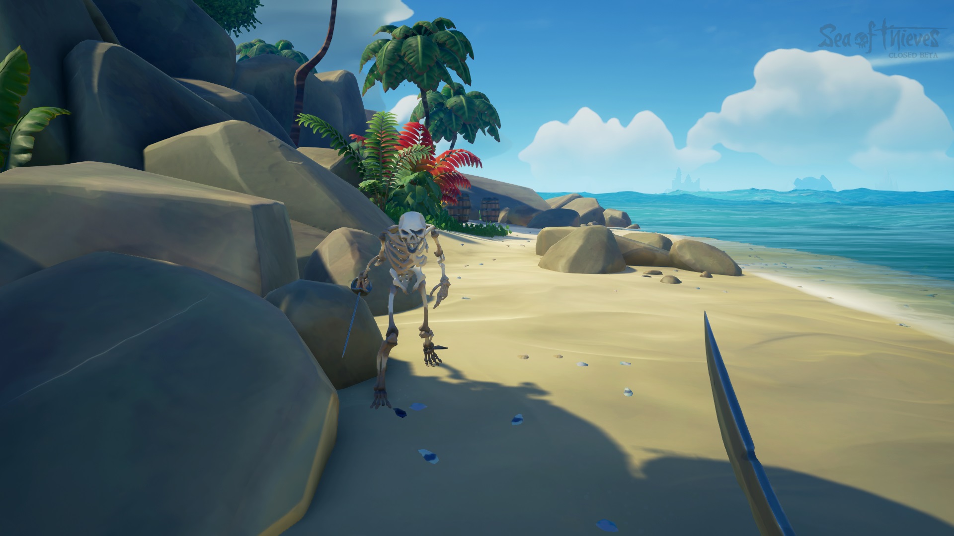 Avec ces convoitises, la vie en mer peut devenir houleuse. Tous les joueurs se retrouvent dans un univers commun. Les rencontres sont donc favorisées. C’est le moment de sortir l’artillerie lourde ! Les canons placés de chaque côté du bateau vont créer du dommage à nos rivaux. Étant donné qu’on est libre de nos mouvements, mon plaisir est d’approcher le navire assez près pour sauter à bord du navire ennemi et de combattre à l’épée. Comme un vrai pirate, quoi !