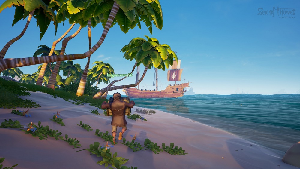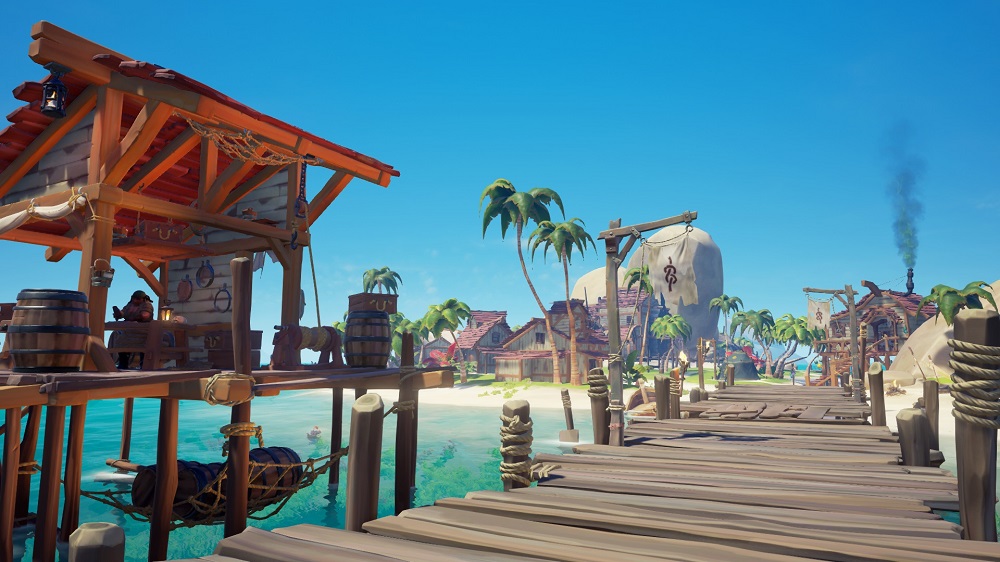 Sea of Thieves nous place dans le rôle d’un pirate des mers. L’objectif est d’amasser des coffres aux trésors et les revendre au meilleur prix pour devenir riche. C’est une petite entreprise que l’on gère, dans le sens où on commence par se procurer une carte offerte gracieusement par le marchand. Celle-ci nous indiquera l’emplacement d’un coffre qui nous fera récolter un peu d’argent. On pourra ensuite s’acheter des cartes plus chères cachant des trésors plus gros. Ces revenus permettront également d’améliorer nos outils comme une pelle, une lunette et une boussole.