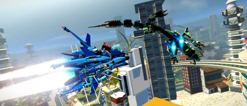 Débutant en pleine bataille au centre-ville, on pilote un véhicule en forme de serpent qui pourchasse les vaisseaux ennemis. C’est ensuite dans notre costume de ninja qu’on se bat sans relâche avec les mouvements appris au dojo par notre maître Wu. On retrouve dans LEGO Ninjago les éléments qui ont fait la popularité de la franchise comme les casse-têtes pour ouvrir une porte, les objets à détruire pour en former de nouvelles et les sections de parkour amusantes à franchir. Tout est bien dosé, faisant partie du scénario sans avoir l’air d’un ajout accessoire.