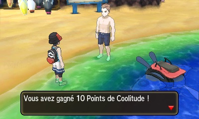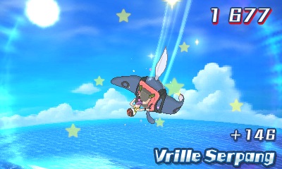 Dans Pokémon Ultra Soleil, les îles affichent quelques changements par rapport à Pokémon Lune qui valent le détour en ajoutant des éléments de jeu supplémentaires en marge de l’histoire principale. De la plage de Mele-Mele, on peut maintenant se rendre à Akala en surfant sur le dos d’une Démanta. Plus amusant que la balade en bateau du professeur, n’est-ce pas ? J’ai même gagné des points de Coolitude avec mon pointage des figures acrobatiques effectuées.