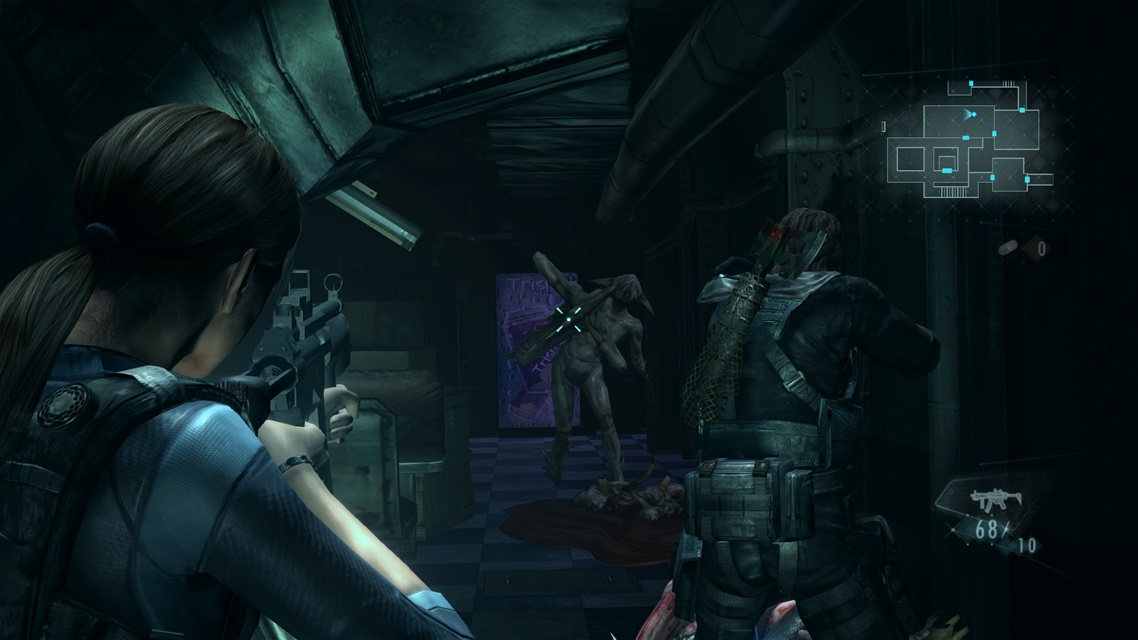 Dans le contexte de la franchise, Resident Evil : Revelations se situe entre Resident Evil 4 et 5. En lisant les carnets de bord laissés derrière avant la catastrophe, on peut deviner ce qu’il advient après cette aventure, surtout si vous avez déjà joué aux autres titres dans la chronologie. Par la manière dont ce jeu est présenté, je n’y ai ressenti aucune longueur. Les épisodes sont courts et l’action se renouvelle régulièrement en passant de Jill et Parker aux portions avec Chris et Jessica. Cela enrichit le scénario qui se tient en somme très bien tout seul. Il n’y a même aucune crainte pour les nouveaux arrivants dans l’univers de Resident Evil.