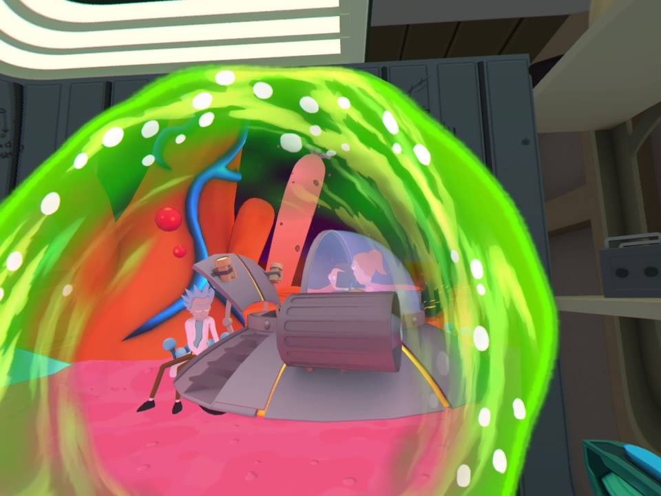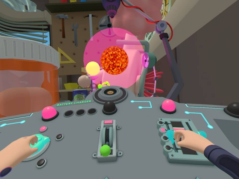 Installé dans le salon de Morty, entrez dans le laboratoire de Rick en insérant le disque de votre prochaine aventure. Le jeu en comprend neuf chapitres dans lesquels on s’amuse dans des activités loufoques comme nourrir un monstre caché au sous-sol afin qu’il nous recrache une barrette de mémoire, recharger une batterie en utilisant le tableau de bord de Rick et fabriquer des objets en utilisant les appareils du scientifique en herbe.