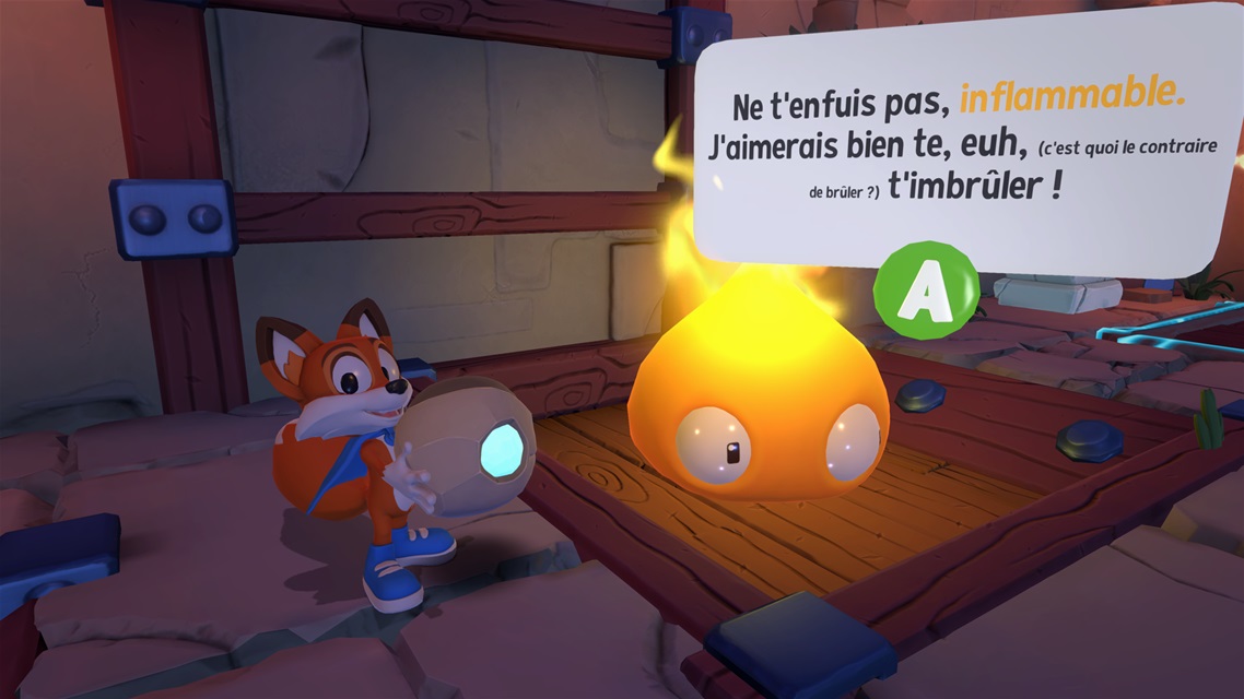Au niveau sonore la musique s’adapte à chaque monde. Les voix sont des onomatopées mais les bulles de dialogues s’affichent en haut de ceux qu’on croise. C’est là qu’on voit l’humour des développeurs. Le titre est léger et divertissant, ce que j’apprécie.