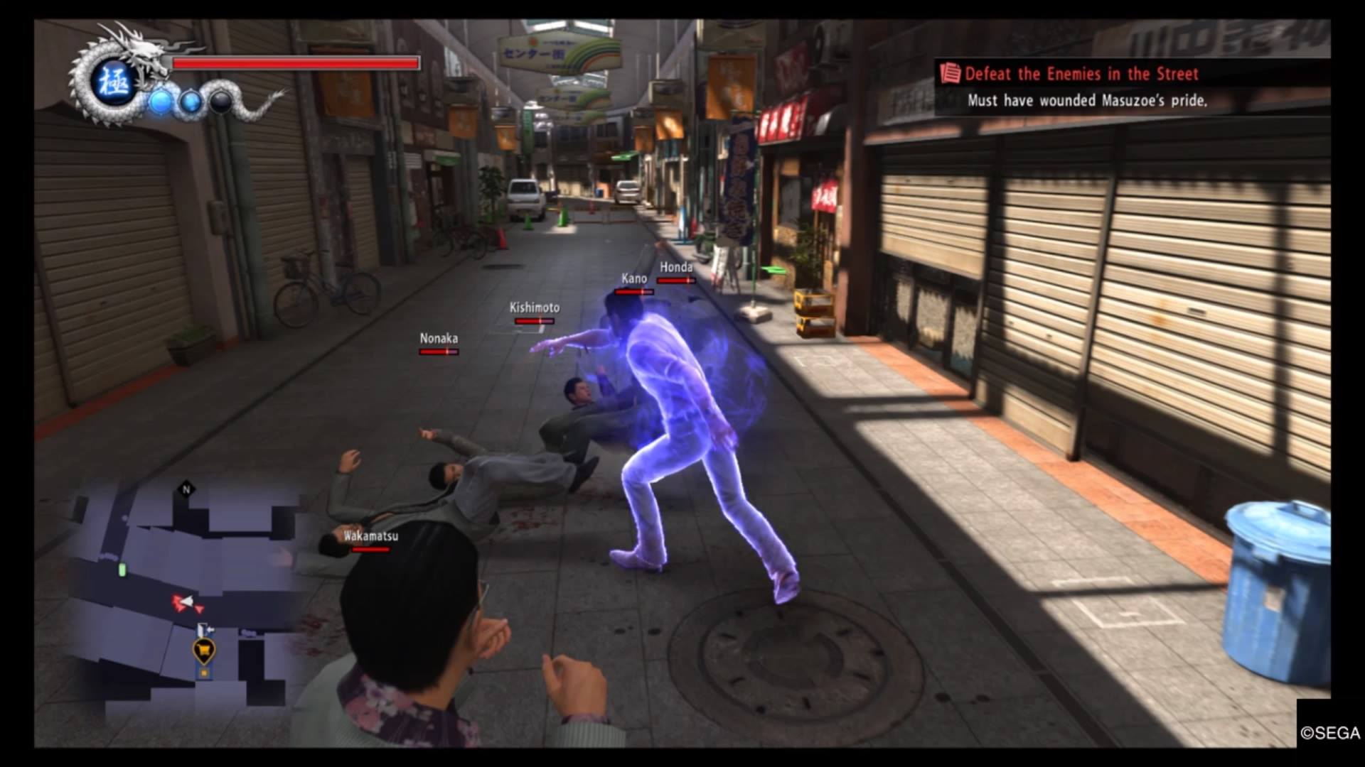 Notre protagoniste a le don de provoquer la bataille mais également de juger du caractère des gens de manière juste. Cela va lui servir pour sa quête car il a besoin de toutes les informations utiles qu’il peut obtenir. La tension est forte entre les clans japonais et chinois. En suivant la piste pour retrouver sa protégée, Kiryu est entraîné malgré lui dans l’univers qu’il souhaitait laisser derrière lui après sa sortie de prison.