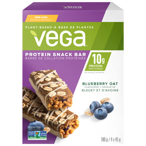 Barre protéinée de Vega – Paquet de 12 – Avoine et bleuets … pour de l’énergie entre les repas au lieu de grignoter n’importe quoi.